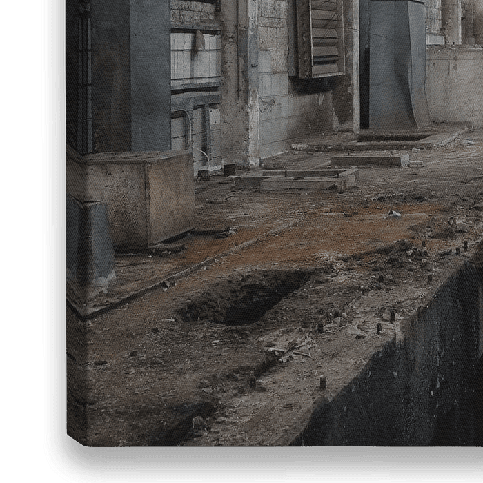 Bâtiment industriel abandonné. Nu weer in gebruik. La toile forme une belle ligne dans l'ensemble. Verlaten industrieel gebouw. Nu weer in gebruik genomen. Het doek vormt een mooie lijn in het geheel. Verlaten industrieel…