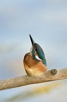 Young Common Kingfisher / Eisvogel ( Alcedo atthis ) looks straight up to the sky, nice clean background, wildlife, Europe.