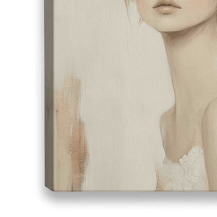 Met een speelse vogel op haar elegante hoed straalt deze dame mysterieuze charme uit. Haar subtiele blik opzij suggereert dat ze iets weet wat wij niet weten. De contrasterende zwarte hoed met de lichte achtergrond maakt haar stijl uniek en verfijnd, terwijl de vogel een onverwachte, eigenwijze twist toevoegt.