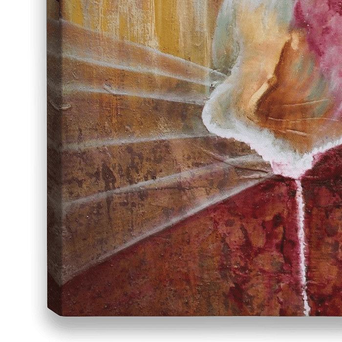 De schilderij met de titel *Energetische Stralen* straalt een gevoel van verbinding en transcendentie uit. Het kleurenpalet bestaat uit warme tinten zoals goud, oranje, en rood, die een sfeer van warmte en energie oproepen. Deze kleuren worden versterkt door de subtiele roze en paarse accenten, die een vleugje tederheid en spirituele…