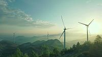 De energietransitie wordt symbolisch weergegeven door een landschap met majestueuze windmolens die statig oprijzen tegen een achtergrond van uitgestrekte velden en een wolkenhemel. De wieken van de windmolens draaien krachtig en vangen de wind, terwijl ze hernieuwbare energie genereren. Dit landschap straalt een gevoel van vooruitgang,…