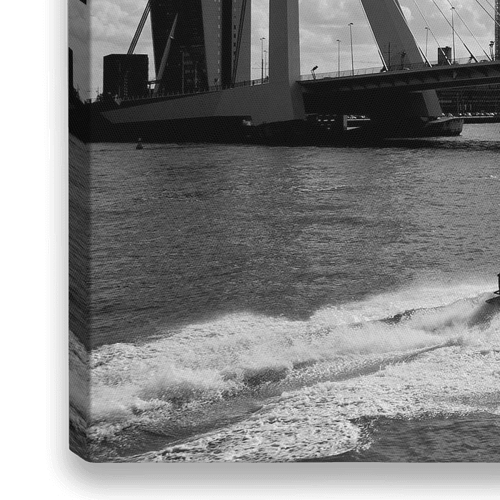 Erasmusbrug met watertaxi in het zwart-wit