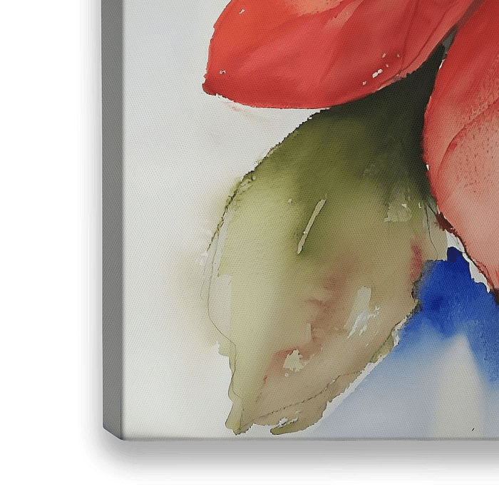 Deze aquarel straalt een betoverende levendigheid uit met een prachtige rode bloem als centraal element. De bloembladen, geschilderd in een rijk palet van rode en roze tinten, lijken bijna te dansen op het papier. De kunstenaar speelt met transparantie en zachte kleurovergangen, waardoor een speelse, maar toch harmonieuze dynamiek ontstaat.