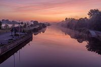 Even voor zonsopkomst aan de brug over de Leie in Lauwe & Wevelgem, Belgie