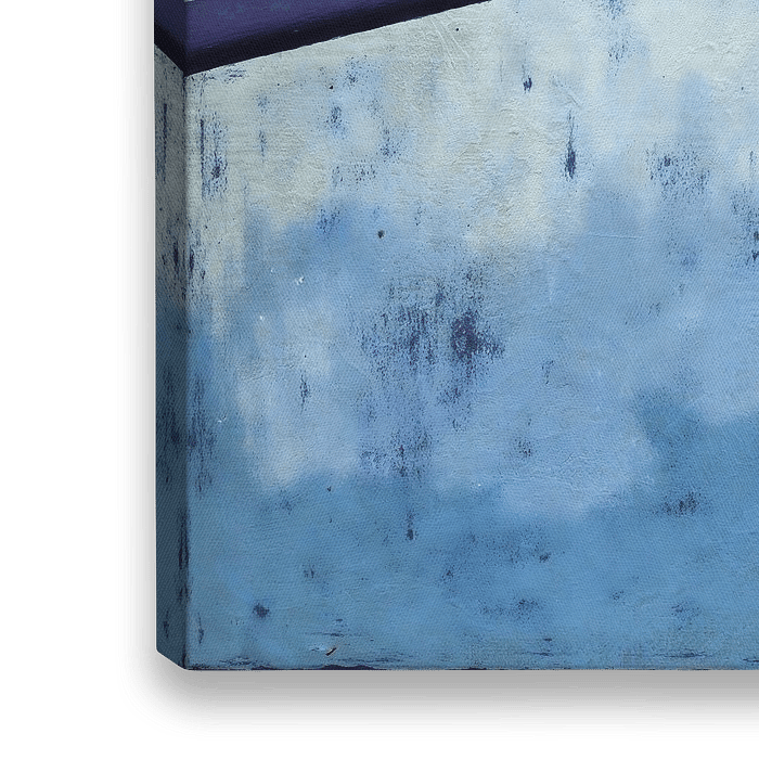 Met dit werk verkent de kunstenaar de stille strijd om evenwicht te vinden te midden van de onvoorspelbaarheid van het leven. De zachte, koele tinten suggereren innerlijke introspectie, terwijl de paarse balk fungeert als een symbool van uitdaging, hangend maar sterk, en doorzettingsvermogen vereist. De keuzes voor aardachtig zwart, geaard blauw en de heldere balk weerspiegelen een contrast dat we allemaal ervaren tussen geaarde stabiliteit en de moed die nodig is om vooruit te komen.