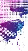 Levendige weergave van digitale popart, waarbij gebruik is gemaakt van gedurfde halftoonpatronen en een spetterend kleurenpalet van roze, paars en blauw. De abstracte vormen lijken op lippen en dit wordt versterkt door de druipende verfeffecten die een gevoel van beweging en spontaniteit geven. De dot-achtige textuur refereert aan de klassieke druktechnieken en benadrukt het retro-gevoel van de popartbeweging.