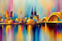 Fantasierijk uitzicht over de Rijn naar de Dom van Keulen in de stijl van een modern schilderij.
