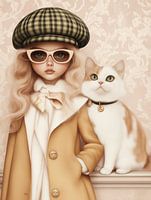 Fashionista, modern portret van een meisje en haar kat van Carla Van Iersel