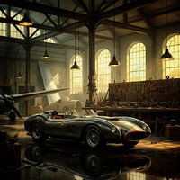 Het schilderij vangt de essentie van tijdloos vakmanschap en de romantiek van vintage techniek. Als kunstenaar streefde ik ernaar een scène te creëren die de schoonheid van de Ferrari Testarossa viert, een meesterwerk van auto-ontwerp. De auto, met zijn gestroomlijnde zwarte buitenkant en gedurfde rode interieur, staat op de voorgrond…