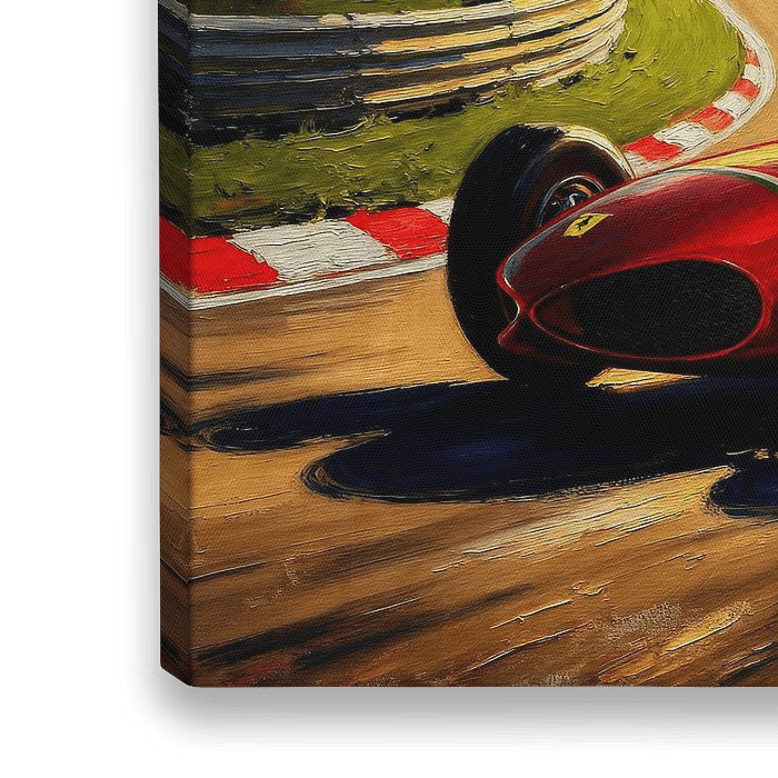 "Ferrari racen op Monza - iconische Formule 1-kunst uit 1961".