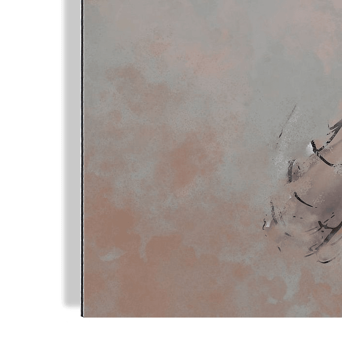 Digitaal portret van jonge vrouw. Zalmtinten in combinatie met grijs en zwart.
