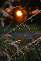 Rond midzomer, als de zon laat ondergaat, strijkt vlak voor dit gebeurt het zachte gouden licht over de rietpluimen.