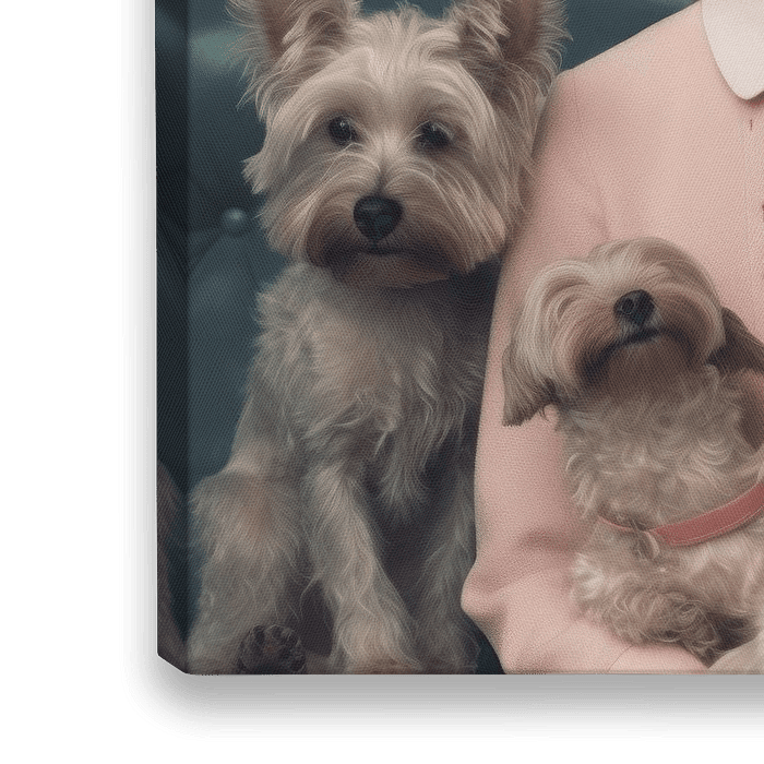 Fine art portret "Me and my dogs". Dit werk is onderdeel van een serie. Mocht je de ruimte hebben, dan is het heel gaaf om meerdere van deze werken in dezelfde ruimte of hetzelfde gebouw te hangen. Maar ook alleen komen deze werken heel goed tot hun recht! Met dit werk haal je echt iets bijzonders in huis: fine art met een knipoog ;-) Om de andere werken te zien, typ je in de zoekbalk hierboven "Me and my dogs". Er zijn ook series met katten, vogels en paarden. Dit werk komt het best tot zijn recht op dibond, aluminium of artframe.