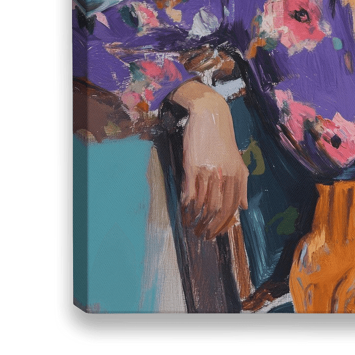 Met haar bloemrijke blouse, levendige kleuren en kalme blik brengt Floral Confidence een krachtig statement van vrouwelijkheid en verfijning in elk interieur.