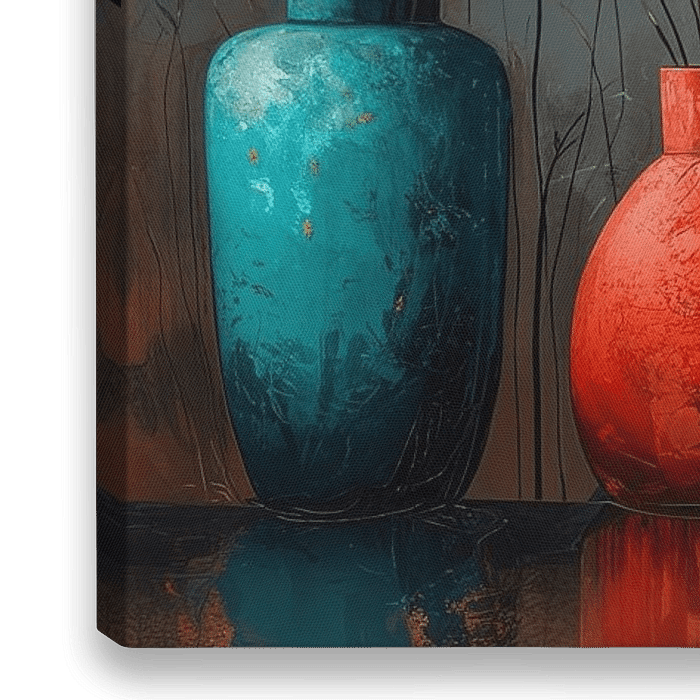 Details: stilleven, bloemen, vaas, kleurrijk, abstract, modern, canvas, interieur, kunst, decoratie