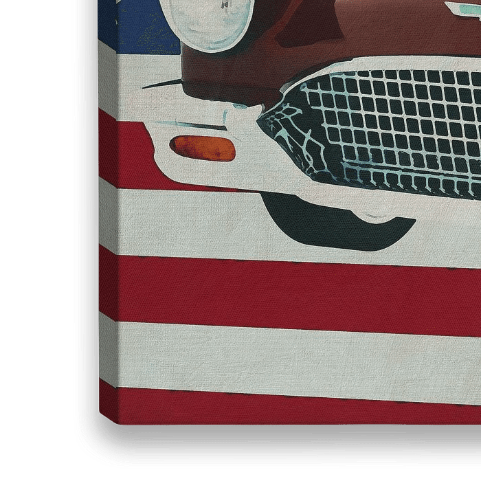 Koop dit Popart kunstwerk Ford Thunderbird Convertible 1957 met vlag van de V.S. van Jan Keteleer op canvas, aluminium dibond, (ingelijste) fotoprint, behang en ArtFrame, op maat geprint in Fine-Art kwaliteit.