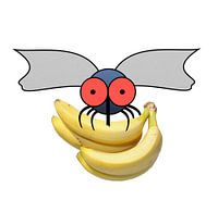 Cartoon Fruit fly with a bunch of banana’s. Drosophila melanogaster