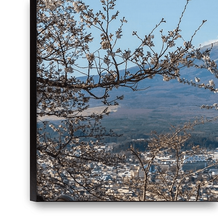 Koop dit landschapskunstwerk Fuji tussen bloeiende takken in de lente van Melanie Viola op canvas, aluminium dibond, (ingelijste) fotoprint, behang en ArtFrame, op maat geprint in Fine-Art kwaliteit.