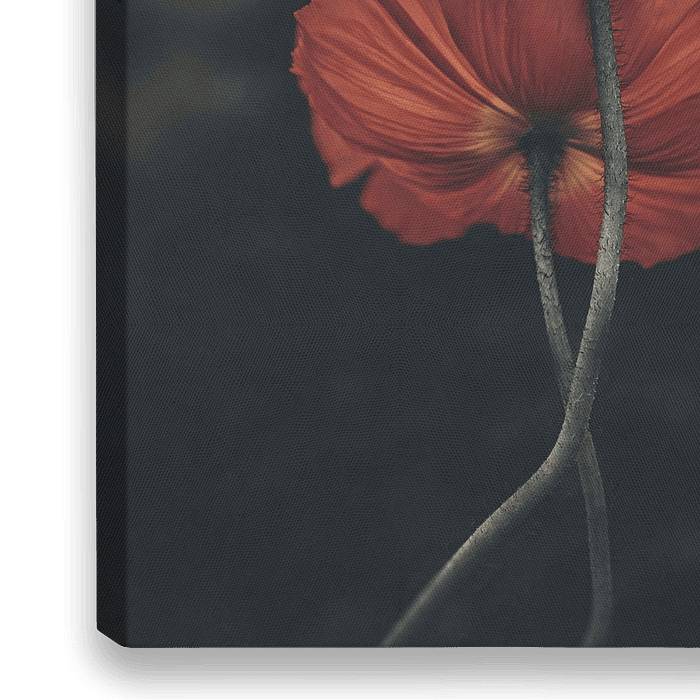 Fine Art Macro fotografie van twee oranje Poppy bloemen op donkere achtergrond