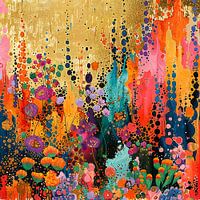 Details: abstract, tuin, bloemen, goud, kleurrijk, textuur, dynamisch, kunst, modern,…