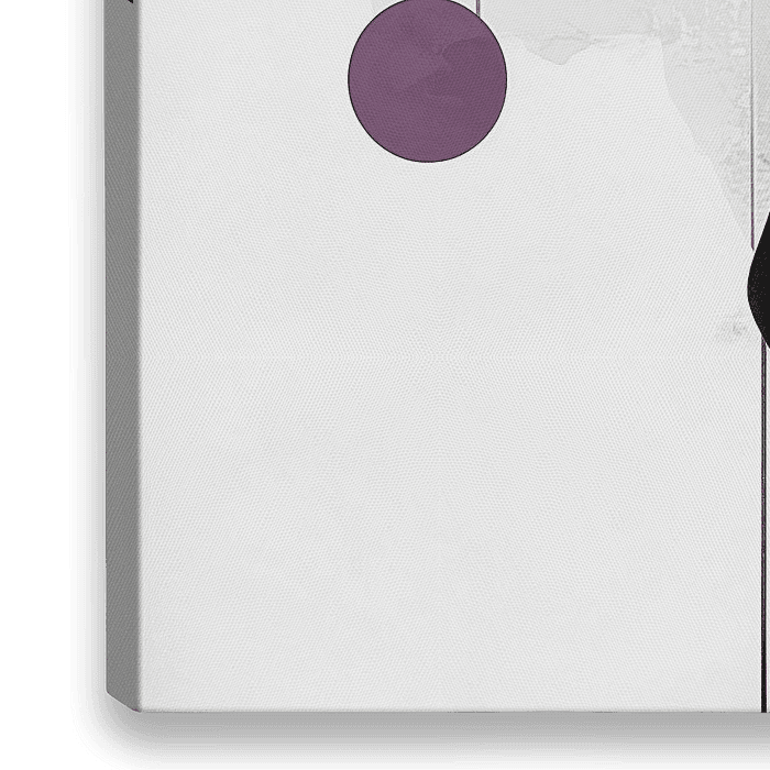 Dit kunstwerk vangt de essentie van vrouwelijke gratie en elegantie in een stijlvolle, geabstraheerde vorm. De zachte, vloeiende lijnen contrasteren met de geometrische vormen en creëren een betoverende, sprookjesachtige sfeer. De beperkte kleurenpalet van zwart, wit, paars en groen geeft een ingetogen, moderne uitstraling, terwijl de…