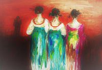 Een acrylschilderij van drie Geisha vriendinnen. Zij dragen hun kimono's en wandelen in de avond met een ondergaande zon. Waar gaan zij naar toe en wat gaan zij doen? Het is voor westerlingen altijd mysterieus . Het is een eeuwenoude traditie. Ieder land heeft zijn eigen cultuur en traditie en die moeten wij respecteren en in ere…