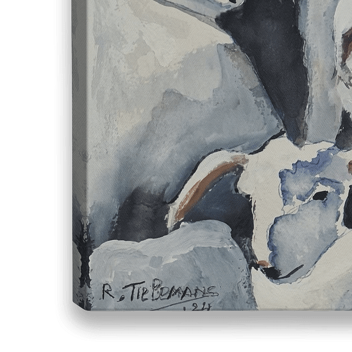 De expressieve penseelvoering geeft de dieren een levendige, bijna abstracte uitstraling, zonder hun herkenbaarheid te verliezen. Hun blikken variëren van nieuwsgierig tot kalm, wat bijdraagt aan de natuurlijke, serene uitstraling van het werk. Dit schilderij straalt rust uit en vangt tegelijkertijd de essentie van het dierlijke samenzijn op een artistieke en sfeervolle manier.