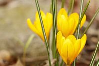 Gele krokussen bloeien volop in de lente. Een geliefde voorjaarsbloem die weer kleur geeft in de tuin. Macro opname.