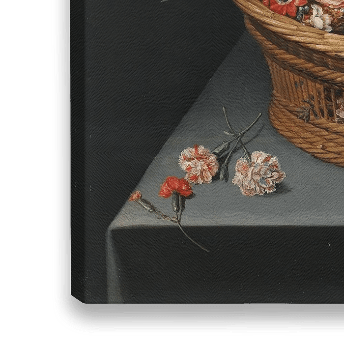 Koop Gemengde bloemen in een mand met een Tazza in de buurt, Jan Brueghel II als reproductie op canvas, aluminium dibond, (ingelijste) fotoprint, behang en ArtFrame, op maat geprint in Fine-Art kwaliteit.