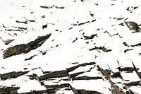 Een gems op de bergflanken van de Italiaanse bergen (Alpen). In de sneeuw valt zelfs de donkere gems niet op en is ze perfect gecamoufleerd.