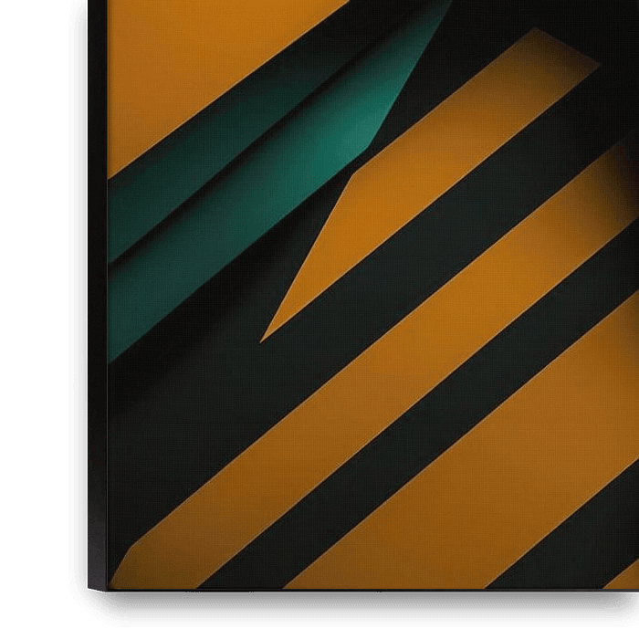 De afbeelding toont een fascinerende samensmelting van geometrie en elegantie. De gebogen lijnen in rijk turkoois lopen symmetrisch en lijken zich eindeloos in de achtergrond uit te strekken, terwijl het sterke geel en zwart scherp gedefinieerde geometrische vormen vormen. Deze contrasterende kleuren zijn in perfecte harmonie en…