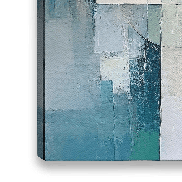 Details: abstract, schilderij, geometrisch, blauw, groen, moderne kunst, cirkel, blokken, canvas, textuur
