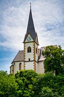 Gezicht op het oeverlandschap en de kerken van Maria Woerth aan de Woerthersee in Oostenrijk
