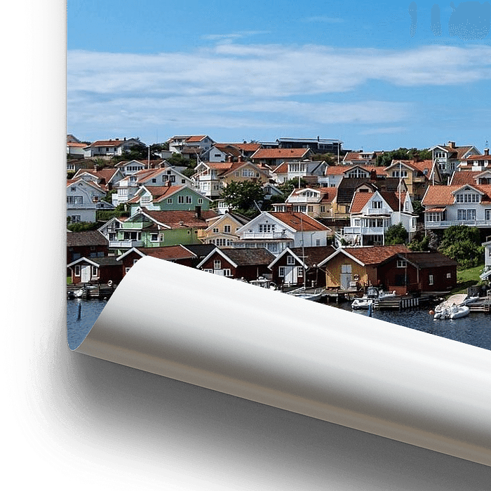 Koop de foto Gezicht op het dorp Fiskebäckskil in Zweden van Rico Ködder op canvas, aluminium dibond, (ingelijste) fotoprint, behang en ArtFrame, op maat geprint in Fine-Art kwaliteit.