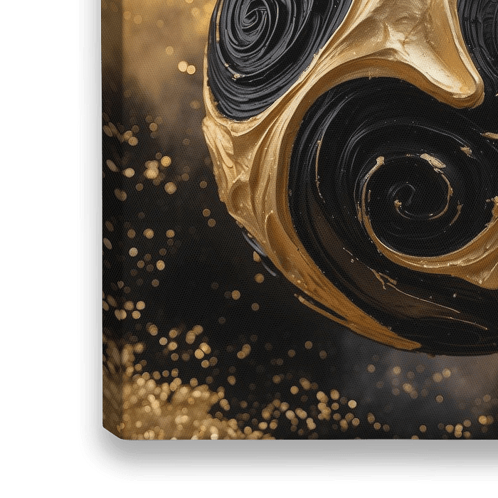 De compositie combineert kracht en verfijning: de donkere basis straalt rust en diepte uit, terwijl de gouden accenten glanzen als vloeibare zonnestralen. Dit contrast maakt het werk niet alleen geschikt als feestelijke decoratie, maar ook als blijvende eyecatcher in eigentijdse ruimtes.