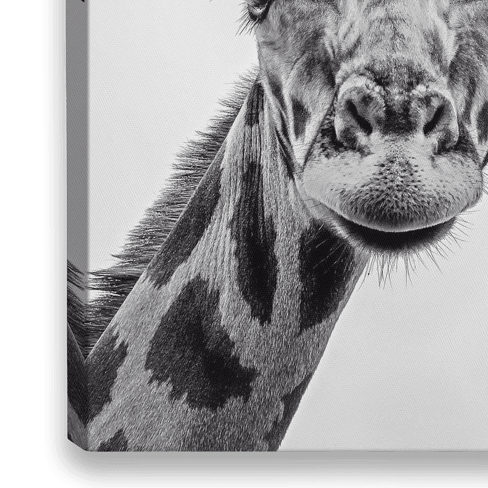 Zwart wit portret van een Giraffe.