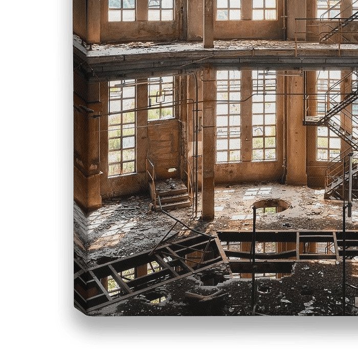 Dit is een foto die ik heb gemaakt in een grote toren die deel uitmaakt van een verlaten industrieel complex. Het complex is omgeven door een hoge en dikke betonnen muur, waardoor het moeilijk is om binnen te komen. Dit is waarschijnlijk de reden waarom de toren bijna volledig vrij is van graffiti. De fabriek produceerde vroeger alcohol, olie en suiker voor meerdere bekende merken.