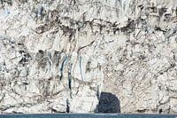 De foto is genomen vanuit een Zodiac, een rubberboot, waarmee je over het gletsjermeer Jokulsarlon in IJsland naar de gletsjerwand van de Breidamerkurjokull kunt varen. De wand is hier 16 m. hoog.