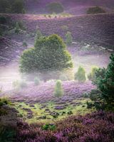 Het is volzomer in Augustus wanneer de heide op de Veluwezoom in bloei staat en zijn paarse tinten laat zien. Het Herikhuizerveld, bij velen bekend onder de naam 'De Posbank' is dan erg populair. Het is er heerlijk ' s ochtends vroeg als de ochtendmist langzaam wegtrekt en de zon het landschap kleurt.