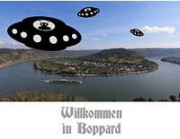 Willkommen in Boppard. Welcome to Boppard Happy aliens welcome you to Boppard.
