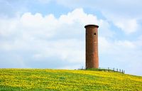 Omringd door een paardenbloemweide: De Gömnitz-toren, een voormalig navigatiemerk, staat op de Gömnitz-berg. Het is gelegen in het district Ostholstein aan de Lübeckse baai. Opgenomen in het voorjaar van 2013.