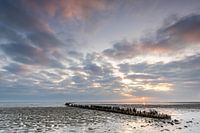 'Golfbreker' is gefotografeerd aan de Waddenzee nabij Wierum (Friesland, Nederland). De zons kwam tussen de wolken door en gaf de wolken kleuren. Een fantastische plek voor landschapsfotografie.