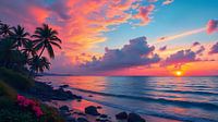 Een perfecte zomerfoto aan zee met een zonsondergang is een waar feest voor de zintuigen. De scène ontvouwt zich aan de oever van een kalme, azuurblauwe watermassa, waarvan de golven zachtjes tegen het strand kabbelen. In de verte strekt zich de uitgestrekte horizon uit, die bij zonsondergang verandert in een caleidoscoop van delicate…