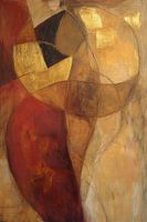 Details: abstract schilderij, gouden kleuren, rode vormen, dynamisch, moderne kunst, moderne abstracte kunst, ronde vormen,…