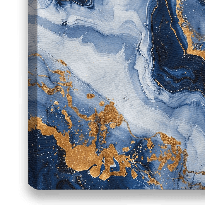 Dompel jezelf onder in de fascinerende wereld van abstracte kunst met dit prachtige kunstwerk. De vloeiende golven van marmer in diepblauw en wit worden aangevuld met elegante gouden accenten die het schilderij een luxueus tintje geven. Dit kunstwerk is perfect voor moderne woonruimtes en voegt een vleugje elegantie en verfijning toe…