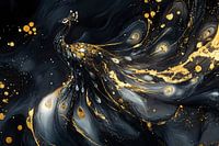 Dit unieke ontwerp toont een elegante pauw, uitgevoerd in een abstracte stijl met een vleugje luxe. De subtiele maar opvallende kleurencombinatie van zwart, goud en wit geeft het geheel een moderne, chique uitstraling. De details in goud benadrukken de vorm en beweging van de pauwenveren en zorgen voor een dynamische flow in het beeld.…