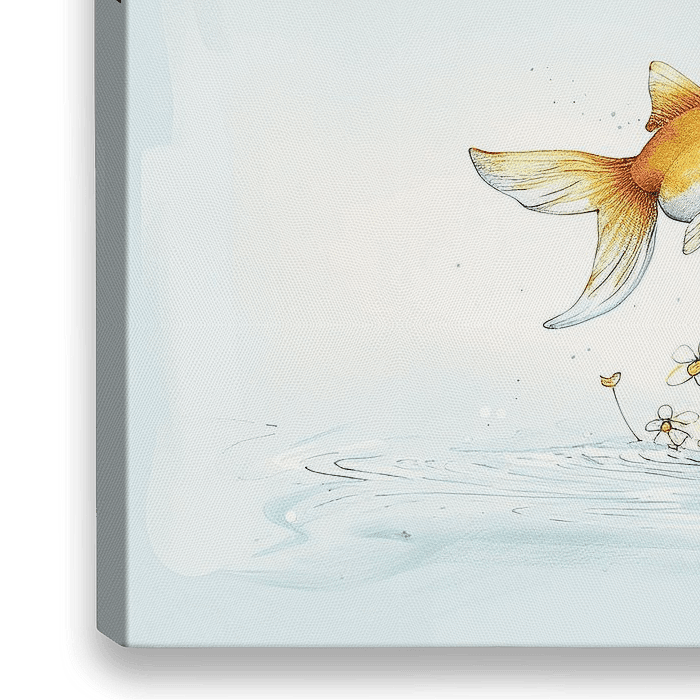 Een charmant tafereel voor een kinderkamer, vervaardigd met speelse waterverftechnieken. In een onderwaterwereld van levendige kleuren en zachte tinten zwemt een prachtige goudvis vrolijk rond. Haar schubben glinsteren in het licht terwijl ze elegant door het water glijdt. De aquarelstijl geeft de afbeelding een zachte en lieflijke…