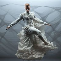 Dit kunstwerk, tot stand gebracht met de schitterende samenwerking tussen mijn artistieke visie en geavanceerde kunstmatige intelligentie, belichaamt werkelijk de essentie van esthetiek en emotie. Het beeld van een mannelijke balletdanser, gehuld in prachtige, witte zwierige kleding, lijkt rechtstreeks uit een droom te zijn ontsnapt om…