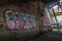 Koop dit abstracte kunstwerk Graffiti in een verlaten fabriekshal van Mark Bolijn op canvas, aluminium dibond, (ingelijste) fotoprint, behang en ArtFrame, op maat geprint in Fine-Art kwaliteit.