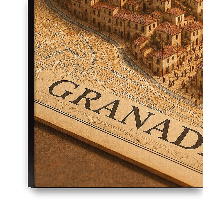 Aanschouw de majestueuze schoonheid van het laatste Moorse bolwerk met deze Granada 3D Diorama Kaart. Het kunstwerk wordt gedomineerd door het uitgestrekte Alhambra paleis en fort complex, hoog gelegen op een beboste heuvel met uitzicht over de stad. Onder het fort dalen de witgekalkte huizen van de wijk Albayzín de hellingen af,…